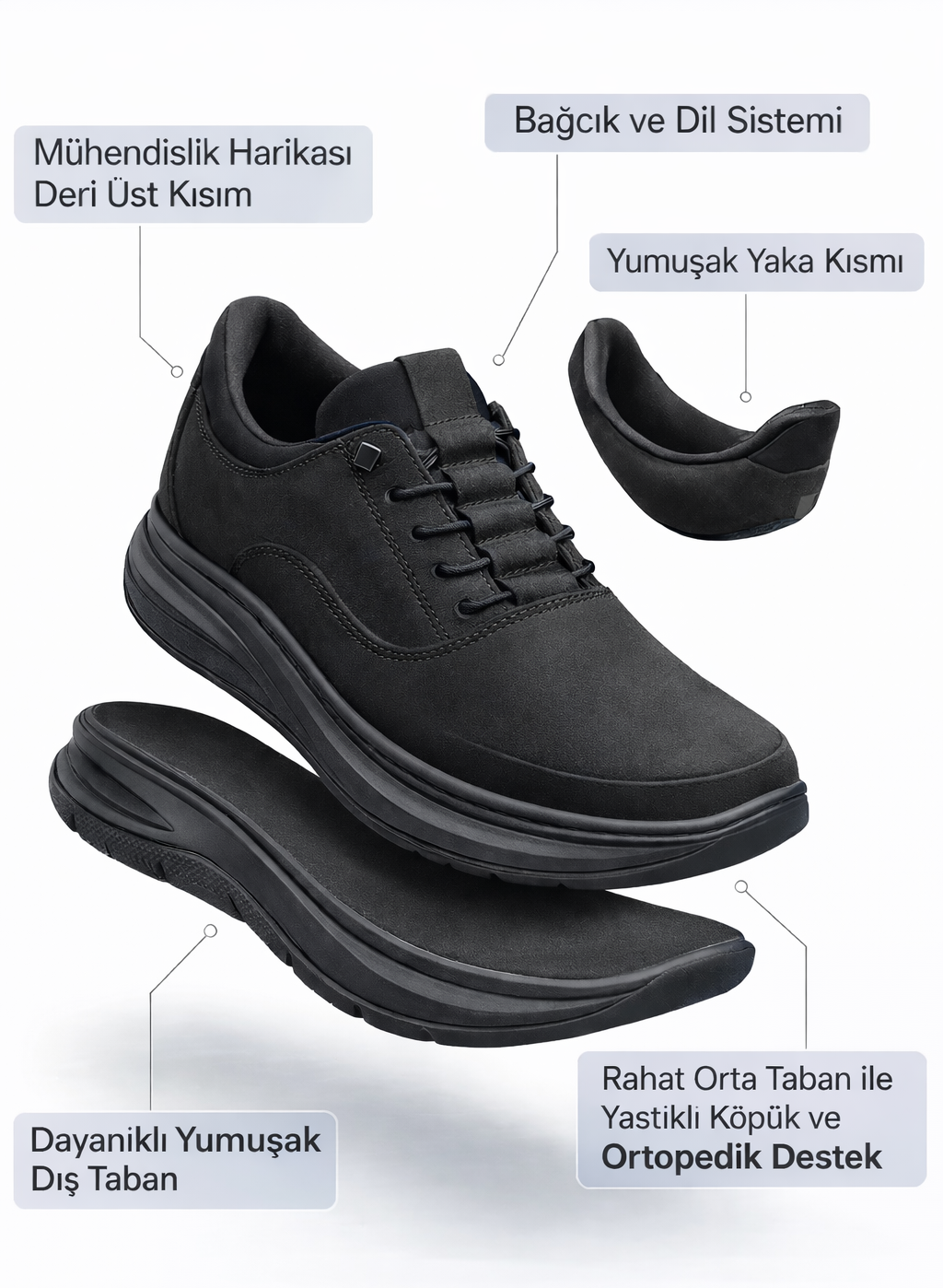 • Ortopedik Taban → Gün boyu konforlu yürüyüş